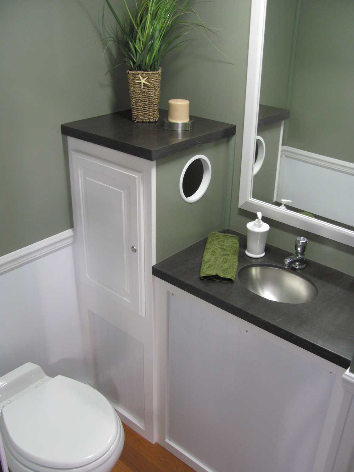 Our Cottage Trailers are the epitome of style and comfort. Decorated in a neutral palette, your guest will enjoy the amenities of home in a portable restroom trailer.